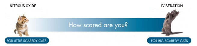 We use two types of sedation at our office depending on level of comfort and dental fear severity.